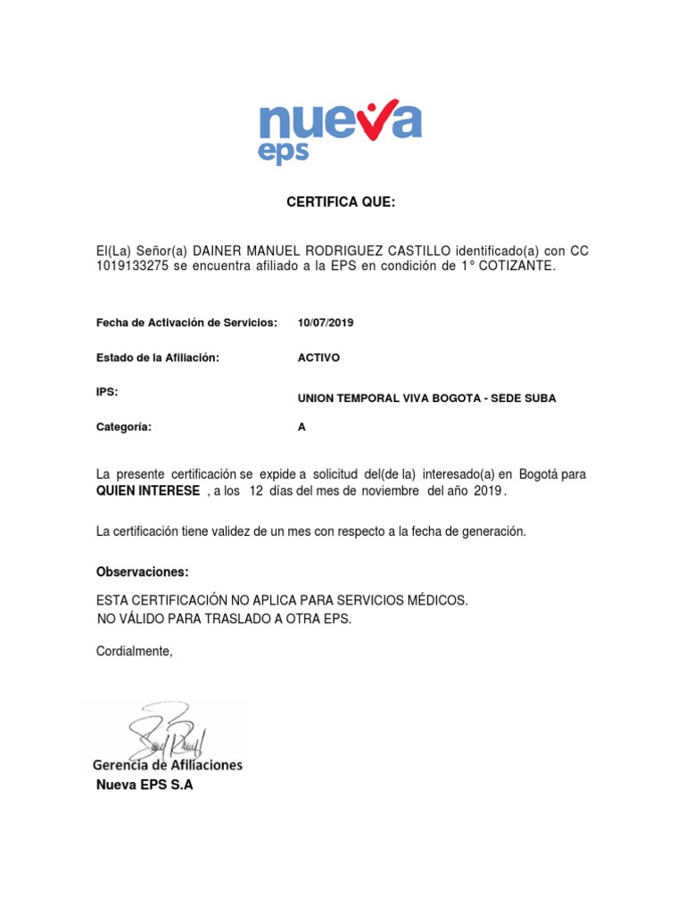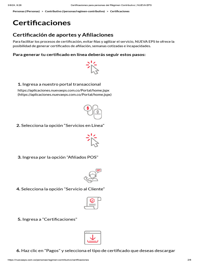 Certificaciones para Personas Del Régimen Contributivo NUEVA EPS