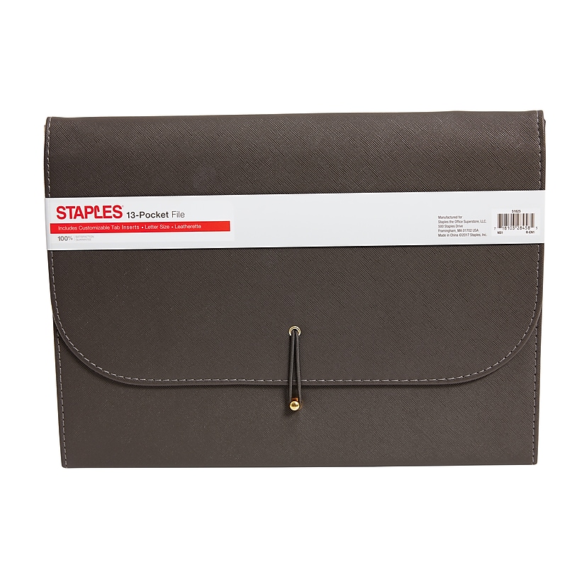 Staples 13 Pocket Leatherette Expanding File Folder Letter Dark Gray