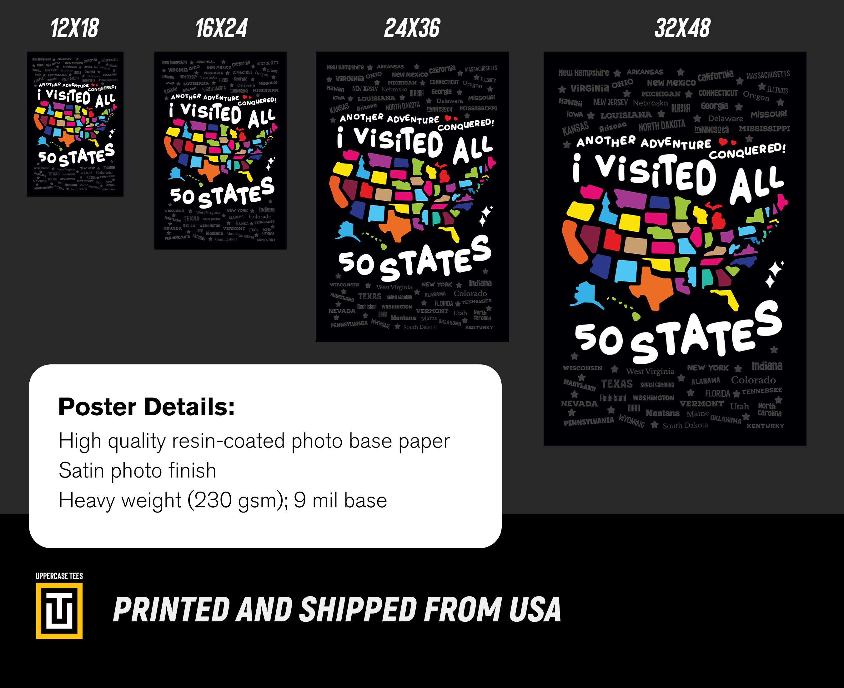 Visited All 50 States Poster 50 States Travel Challenge Wall Etsy
