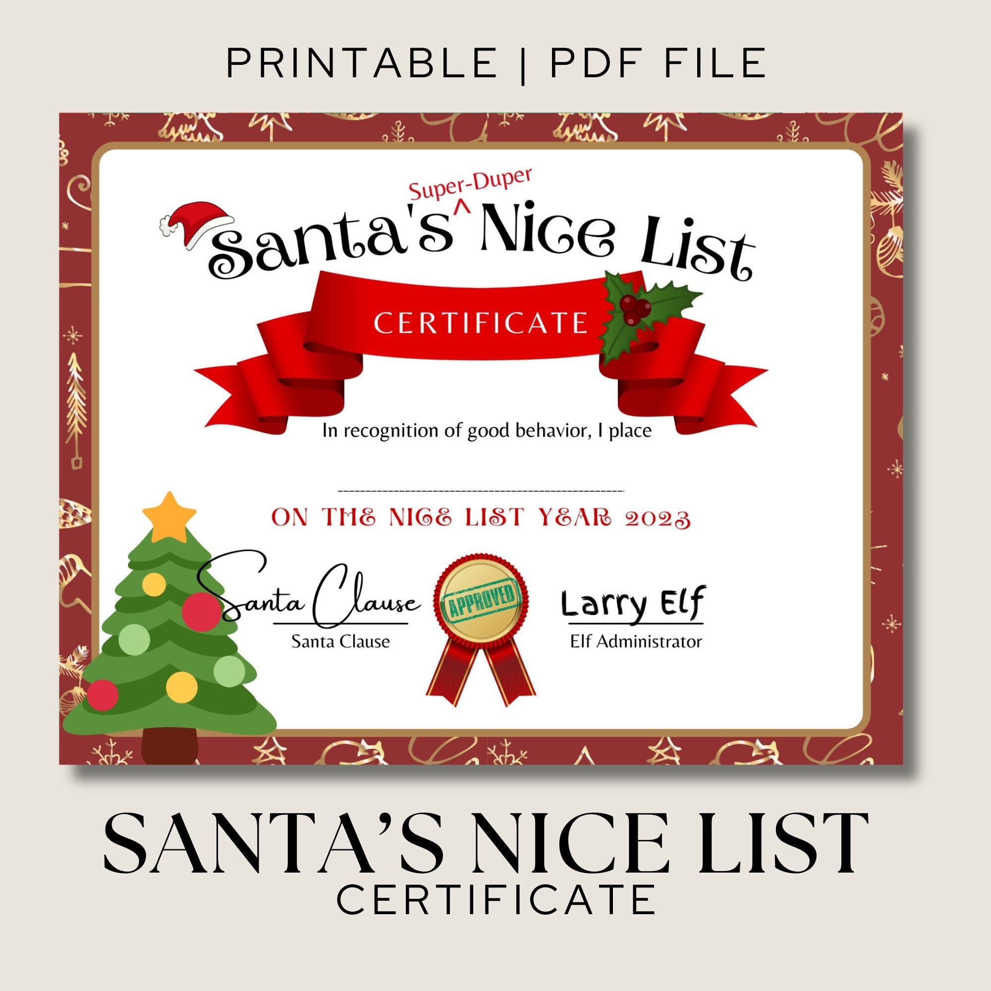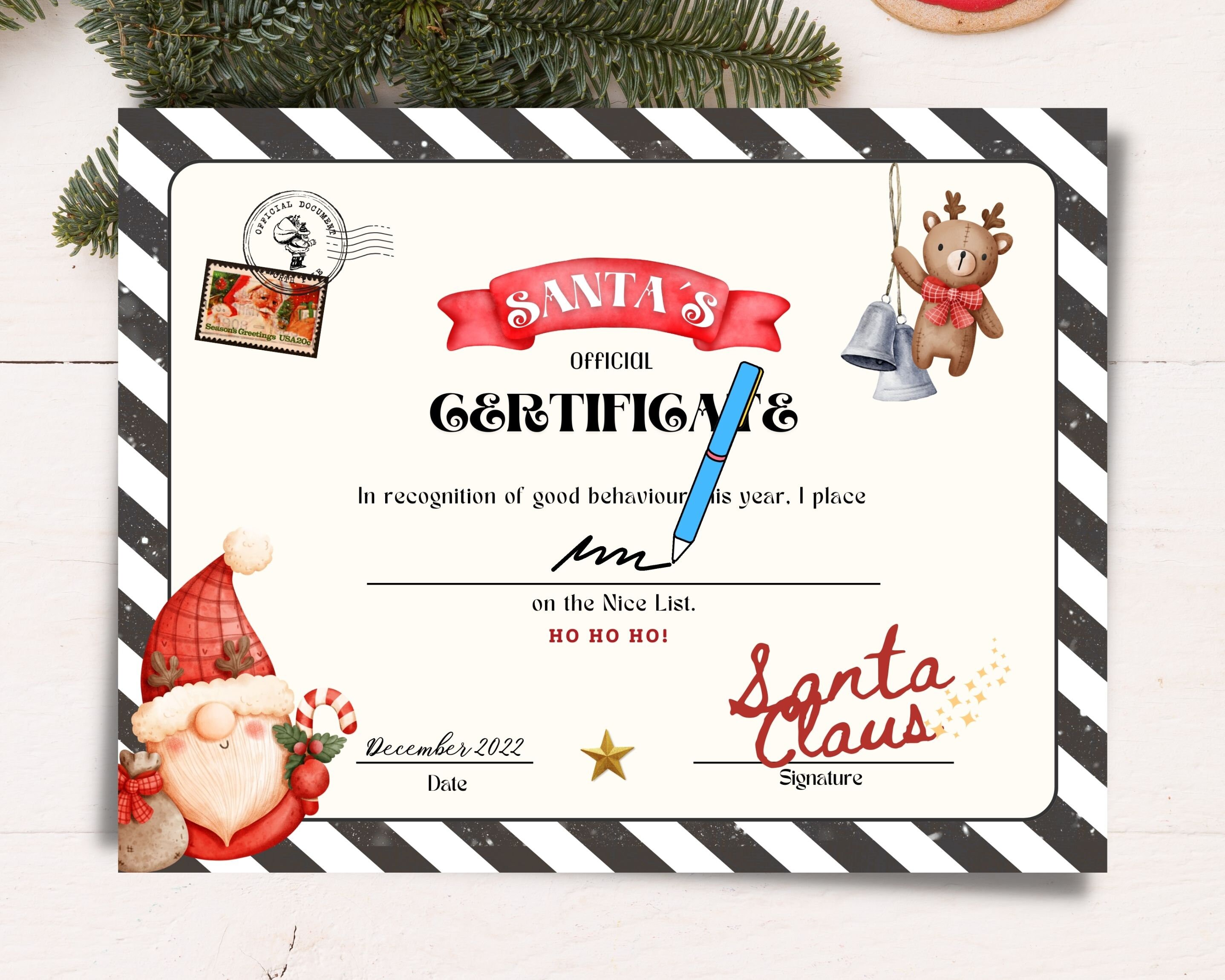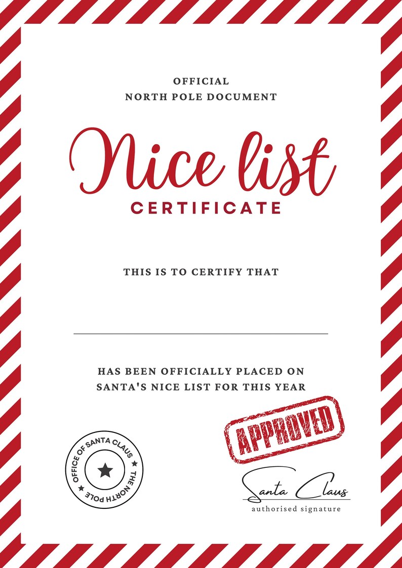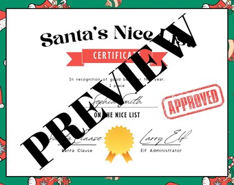 Santa Nice List Certificate Digital PDF Print at Home Christmas