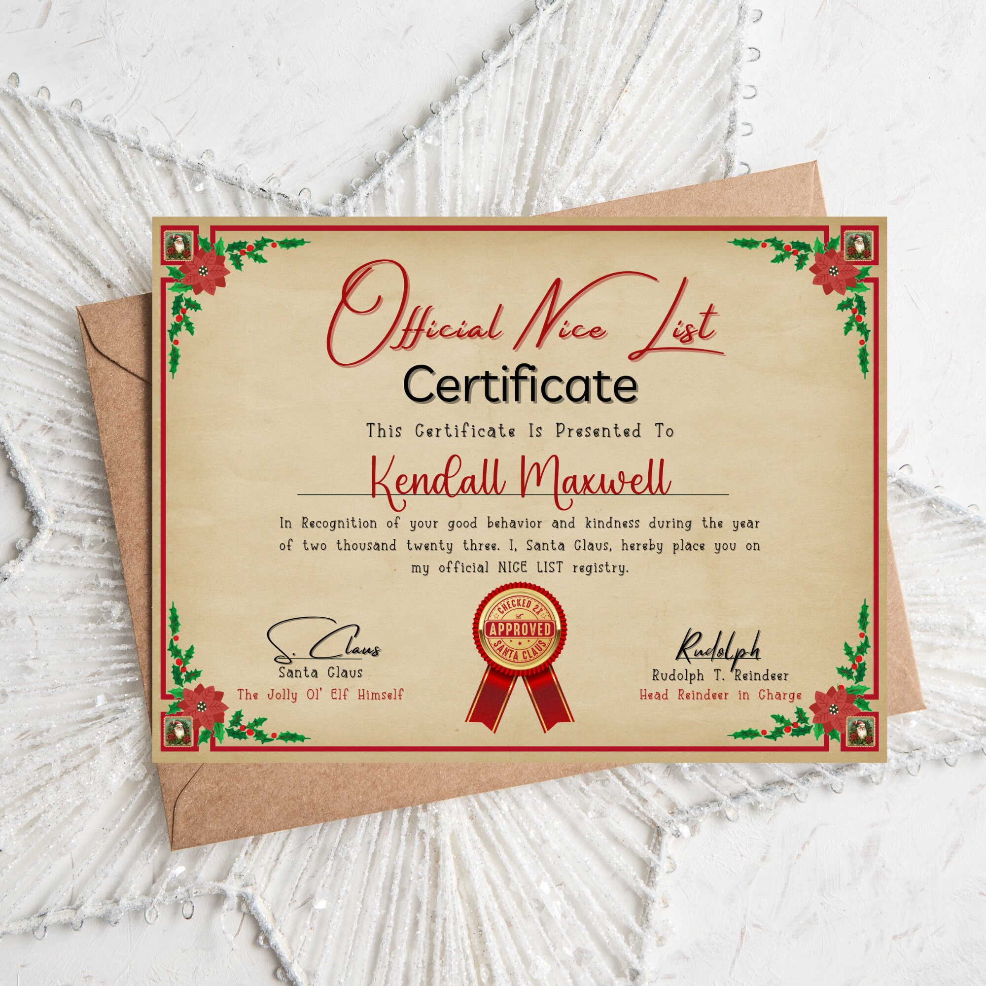 Editable Santa Nice List Certificate: Printable Christmas Keepsake