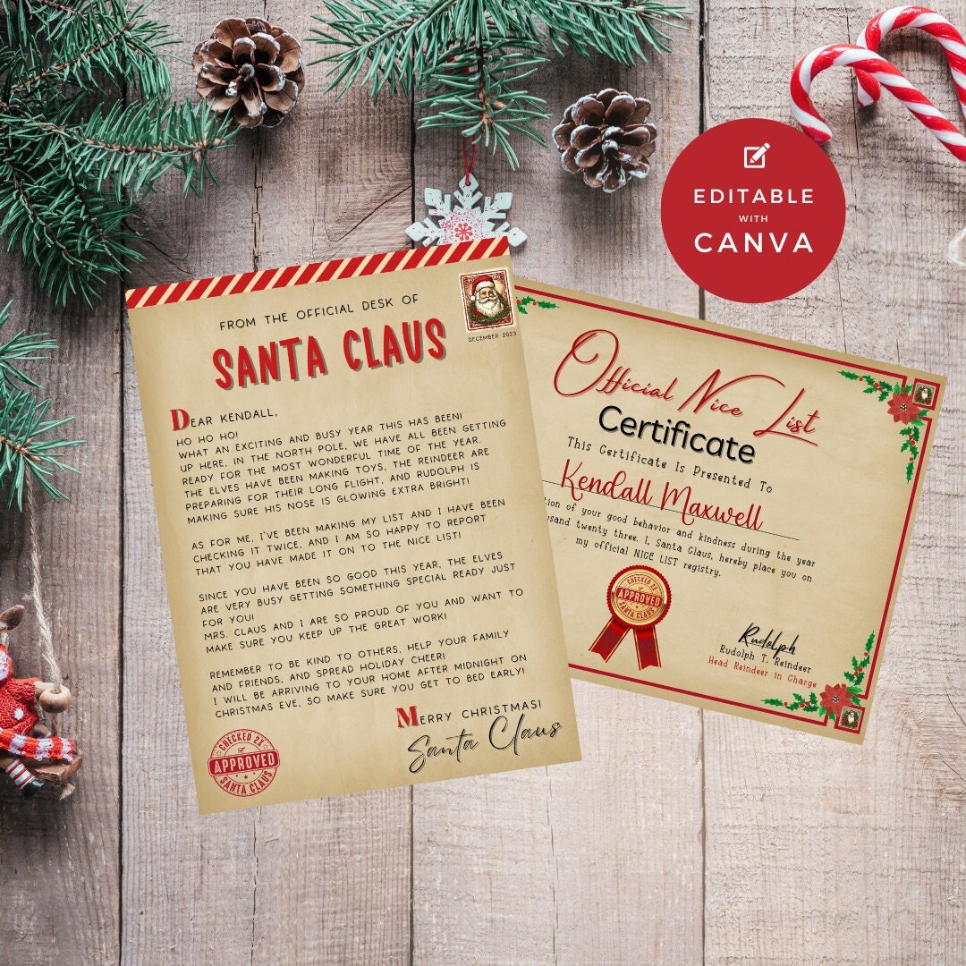Santa Nice List Certificate Canva Printable Letter From Etsy