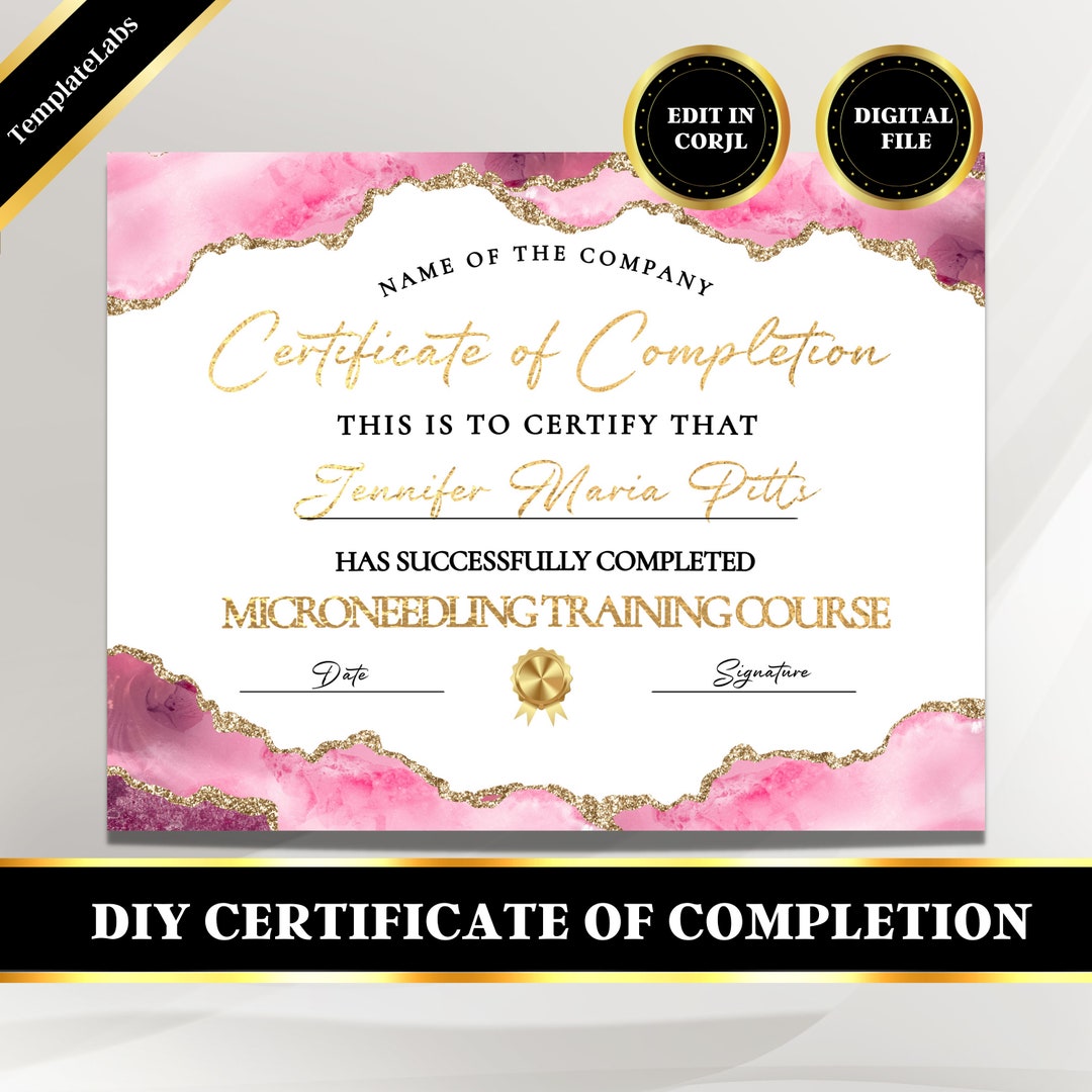 Certificate of Completion Lashes Certificate Template Rose Gold
