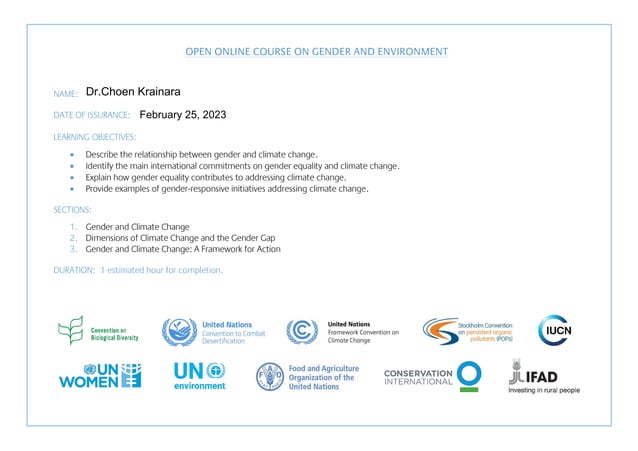 Certificate of Participation in Gender and Climate Change PPT