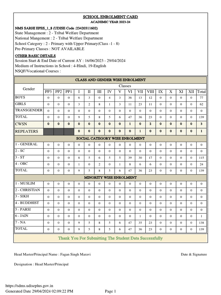 SDMS School Certificate 08260523903 manoharpura PDF Gender