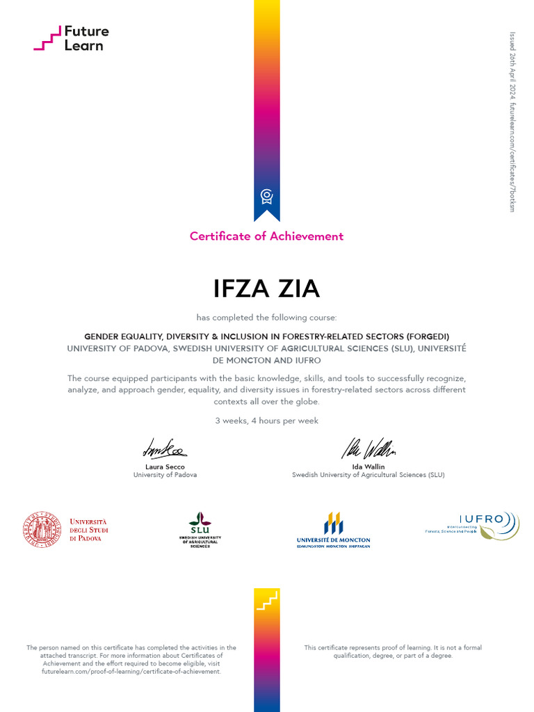 gender equality diversity in forestry related sectors certificate of