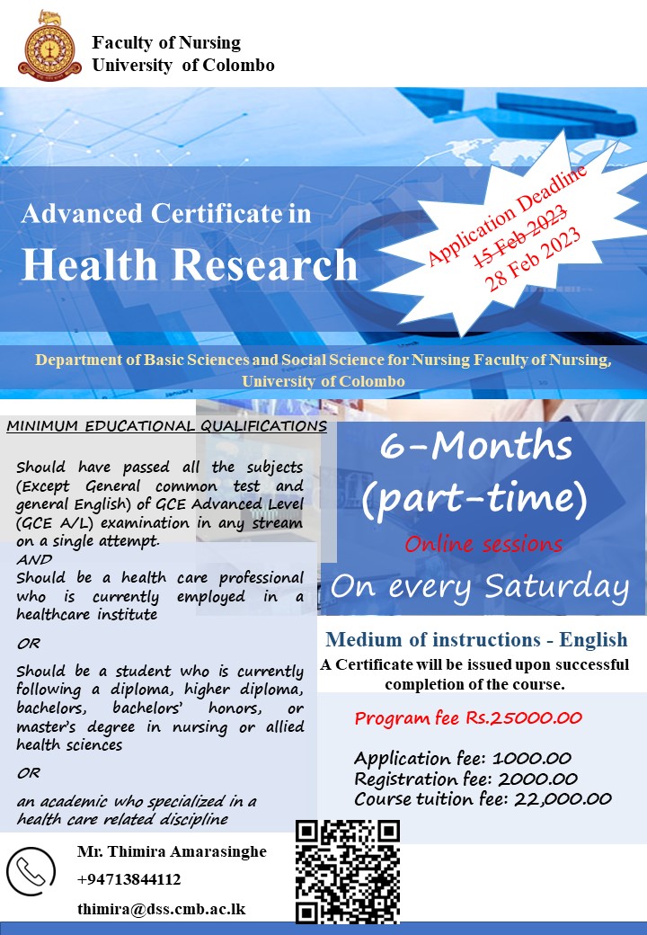 Certificate Courses Advanced Certificate in Health Research Faculty