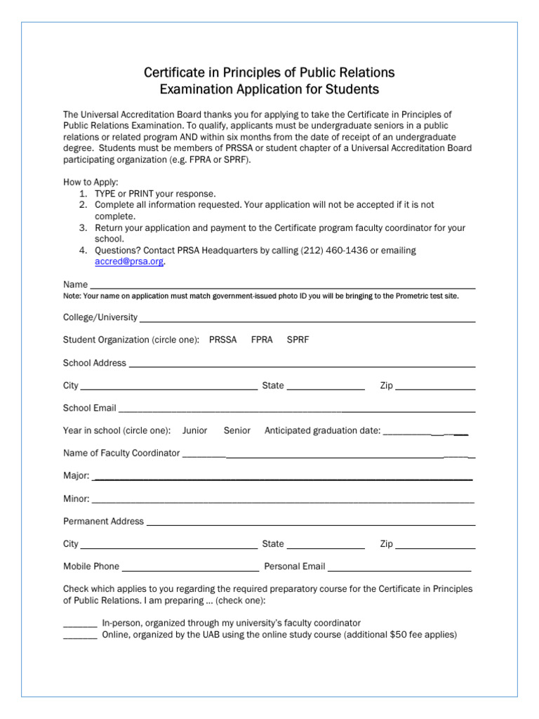 Fillable Online Certificate in Principles of Public Relations