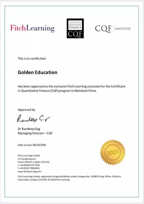 CQF ย่อมาจาก หนังสือรับรองทางการเงินเชิงปริมาณ Certificate in
