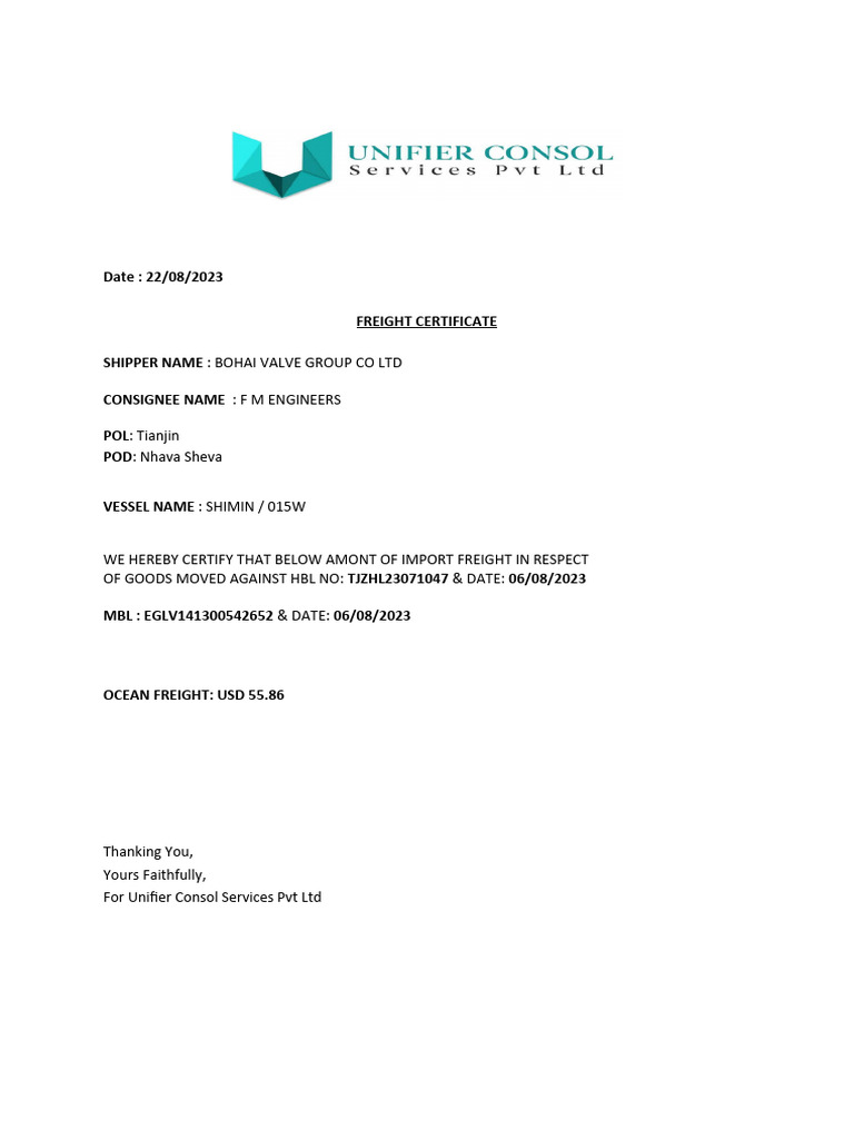 FREIGHT CERTIFICATE PDF