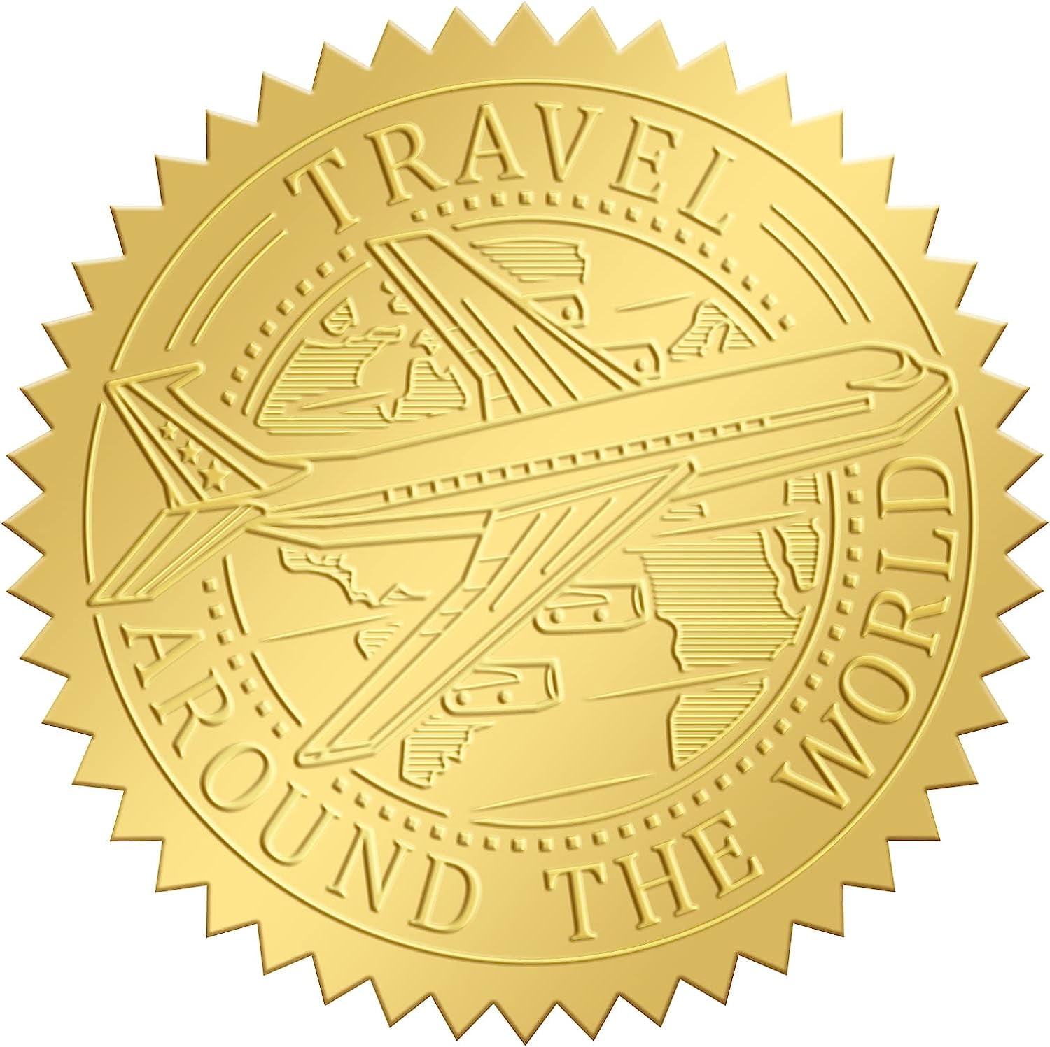 DIY 2 quot Gold Foil Sticker Airplane 100pcs Certificate Seals Gold