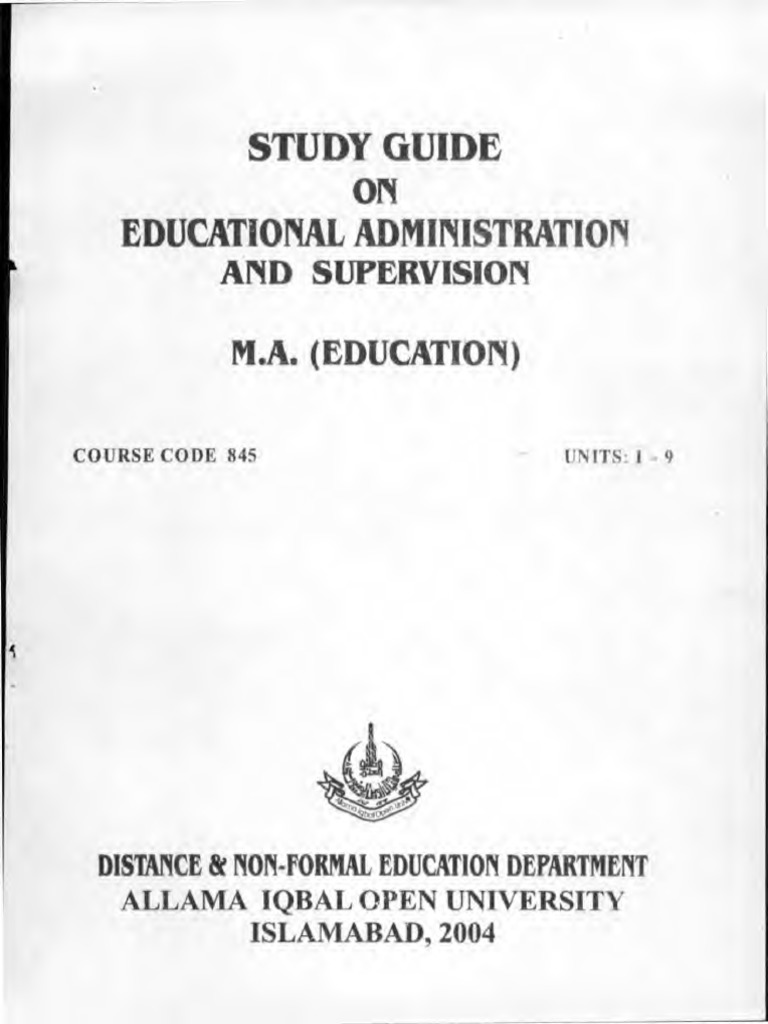 Educational Administration Supervision Code No 845 Spring 2022 Past