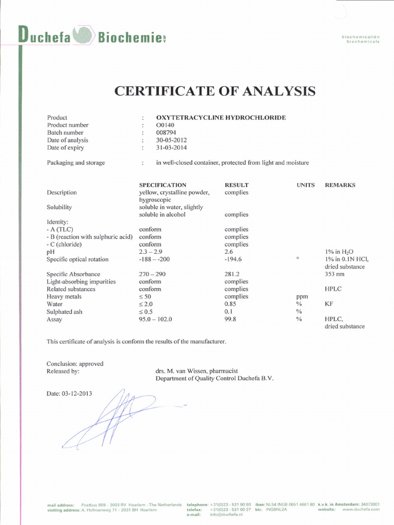 Certificate of Analysis