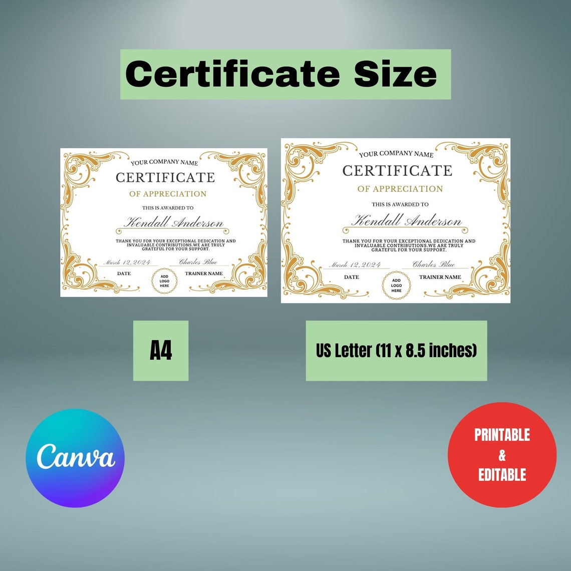 Certificate Of Appreciation Editable Printable Template Etsy