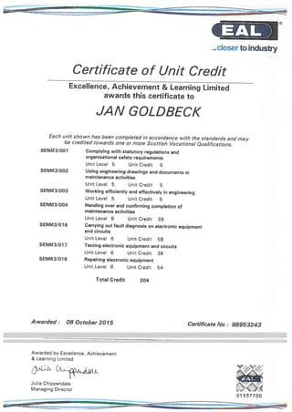 Apprenticeship Certificate James Engineering