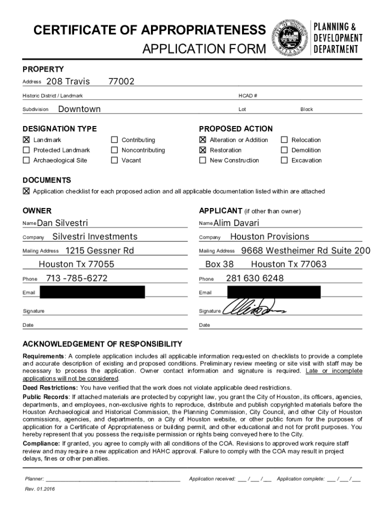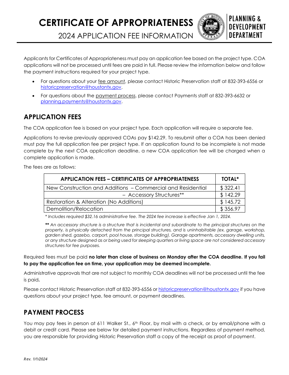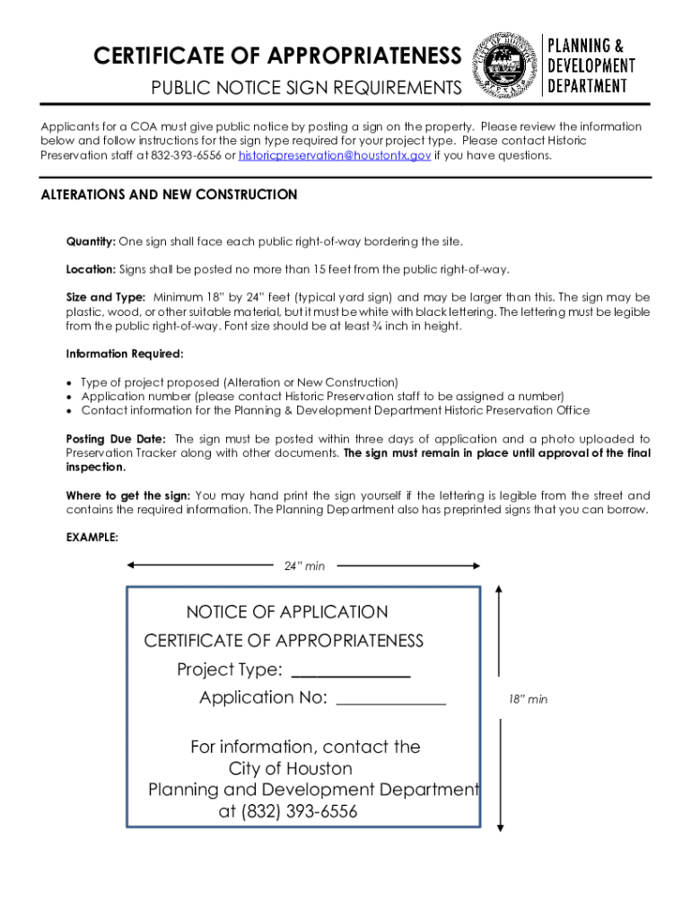 2024 City of Houston Texas Certificate of Appropriateness Download