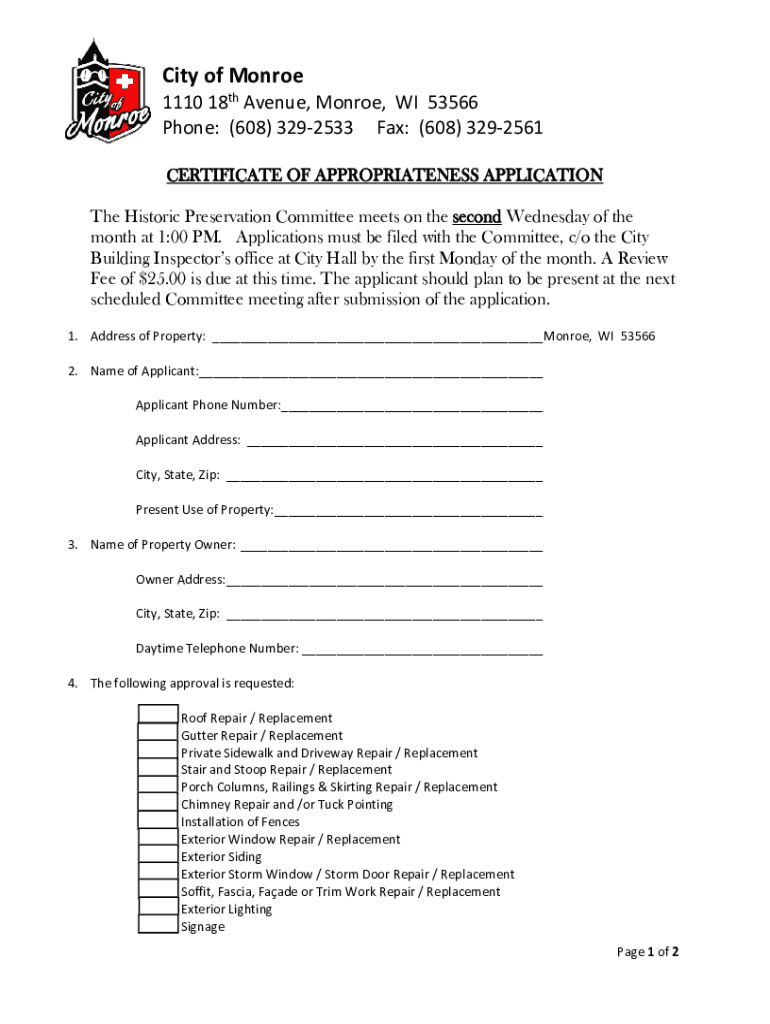 Fillable Online 4 2 Certificate of Appropriateness Form doc Fax Email