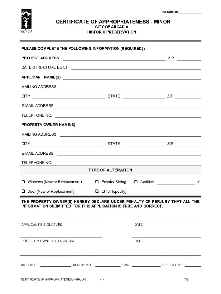 Fillable Online Certificate of Appropriateness (General)Whittier CA