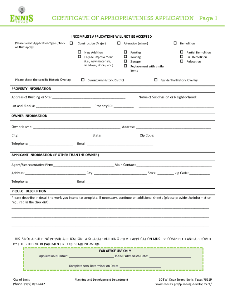 Fillable Online Applying for a Certificate of Appropriateness Fax Email