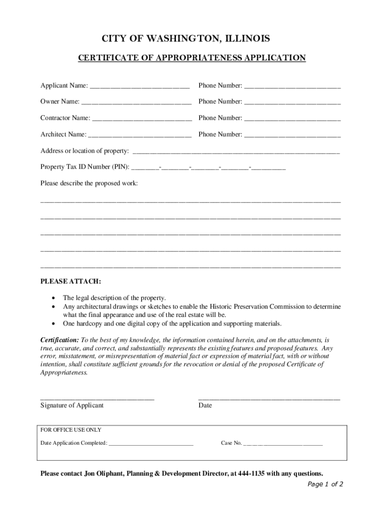 Fillable Online Blank Certificate of Appropriateness Application 2015