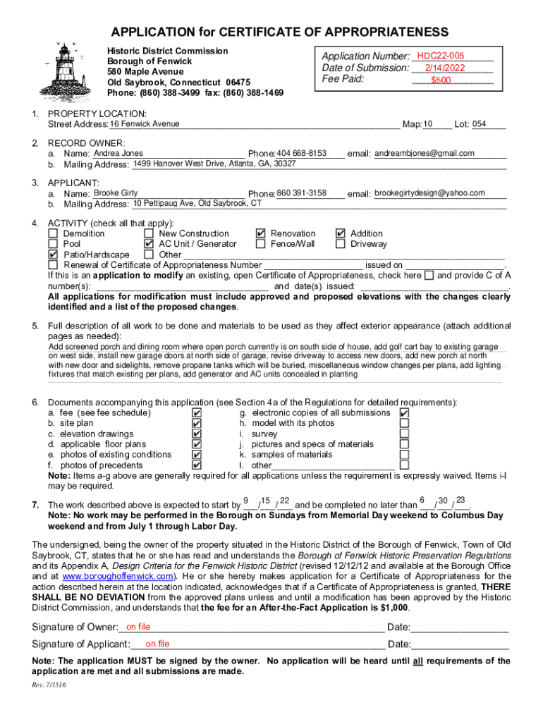 APPLICATION CERTIFICATE OF APPROPRIATENESS: Fill out sign online DocHub