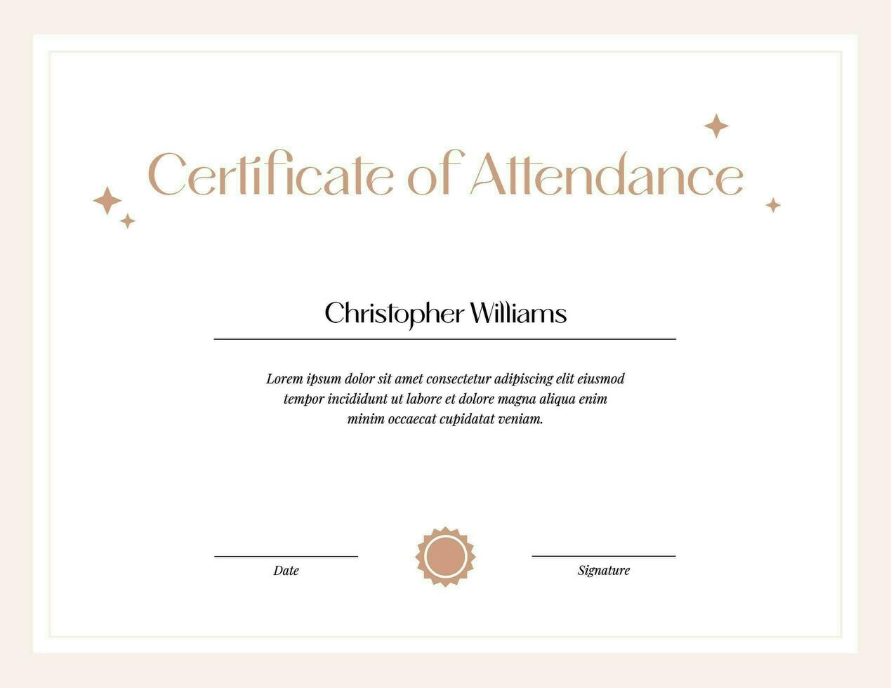 Instantly Download Printable Certificate Of Attendance Template Sample