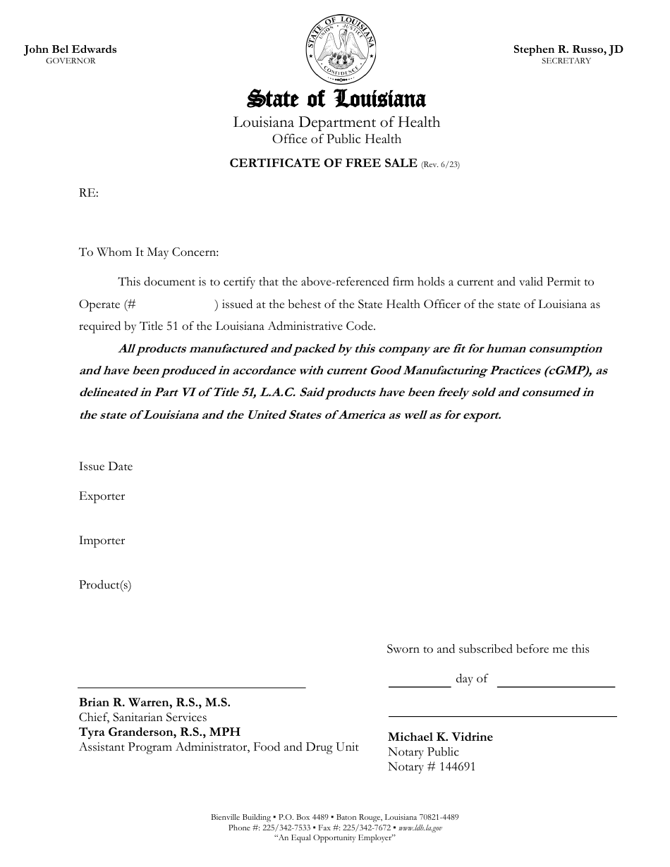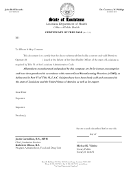 Louisiana Certificate of Free Sale Download Fillable PDF Templateroller