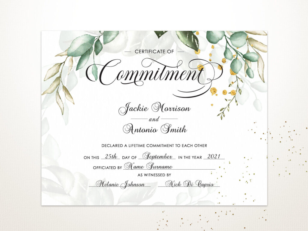 Printable Commitment Certificate Template: Editable Ceremony Keepsake