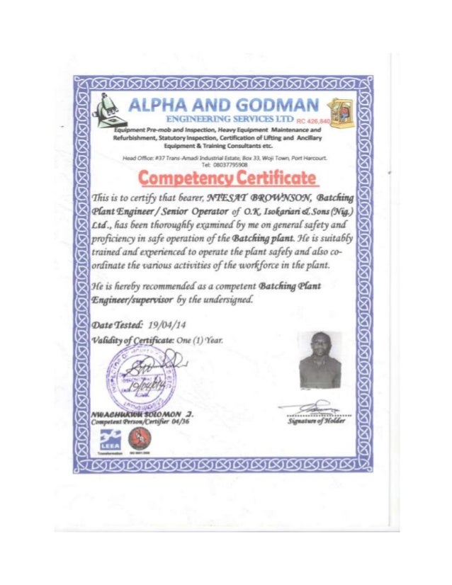 Here are some of the images for Certificate Of Competence that we found in our website database.