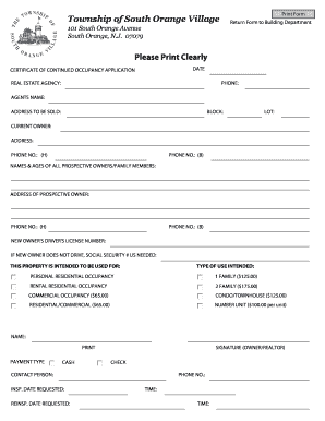 Fillable Online southorange Certificate of Continued Occupancy Form