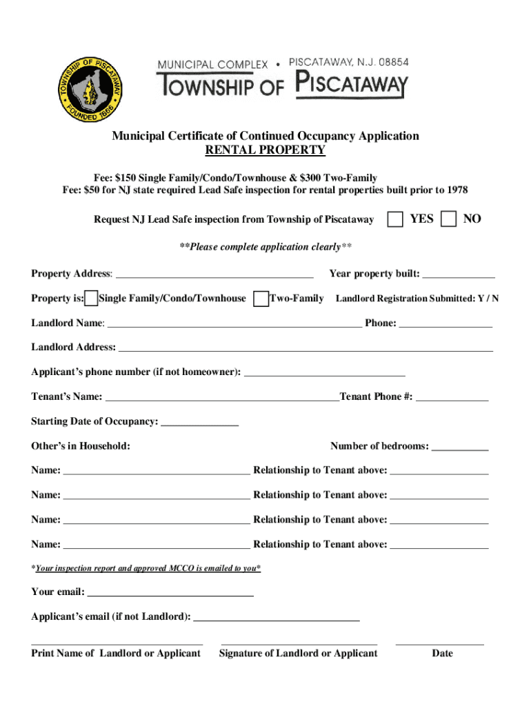 Certificate Of Occupancy Application Nj Fill Online Printable