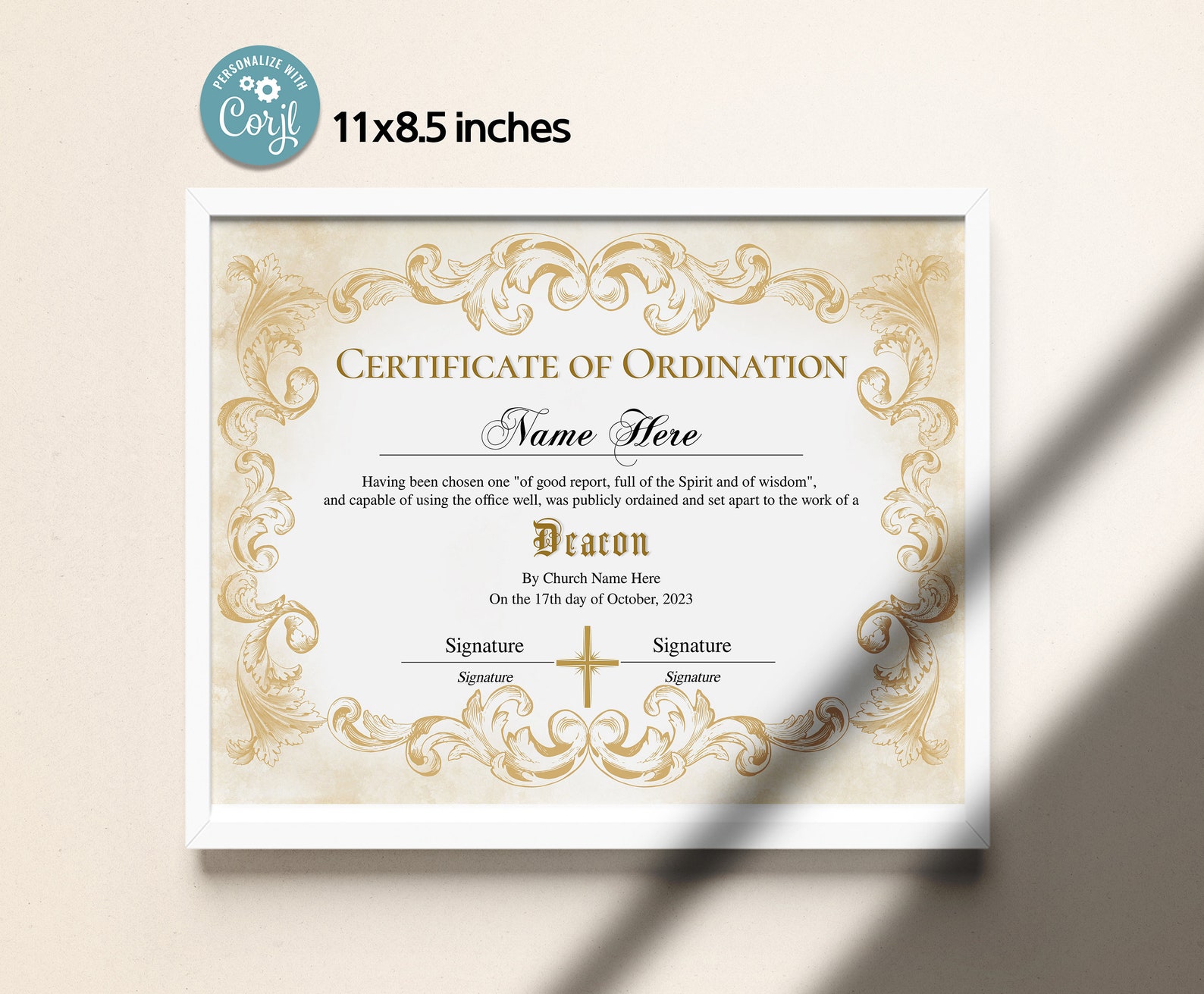 11x8 5 Certificate of Ordination Deacon Ordination Certificate