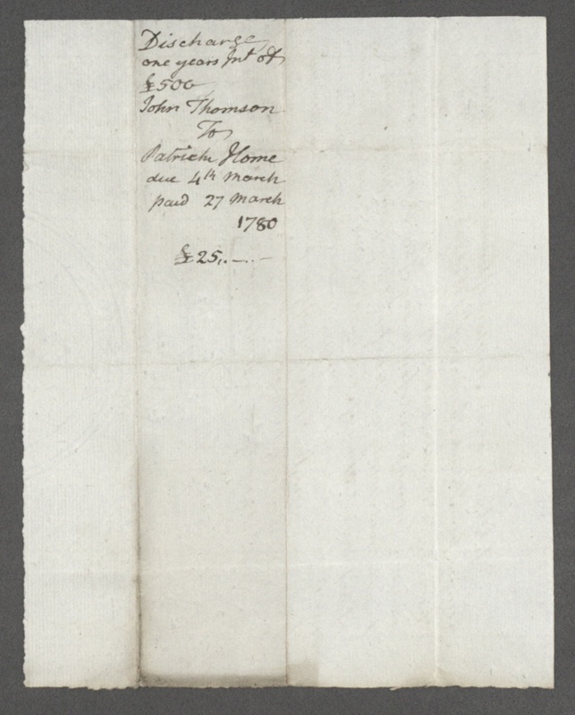 Discharge of one year #39 s interest due on a Bond from Patrick Home of