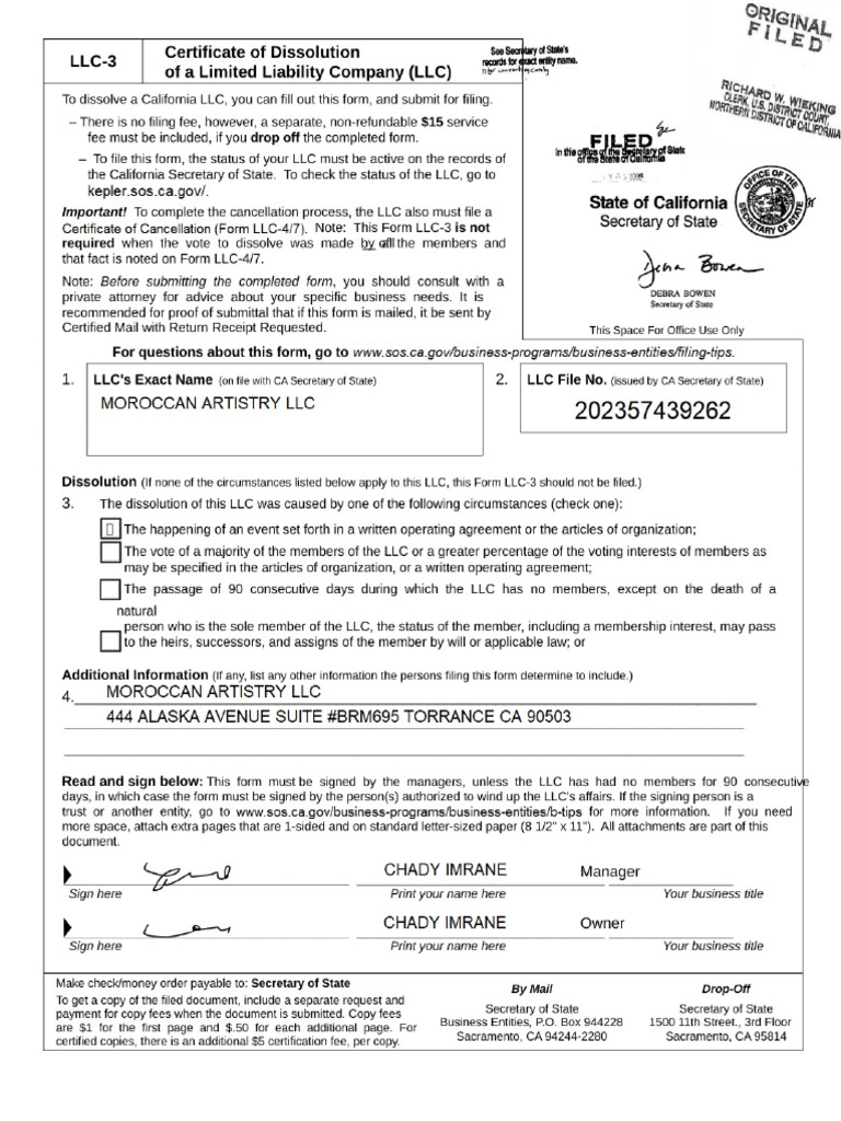 Fillable Online Forms LLC 3 and LLC 4/7 CA LLC Cancellation
