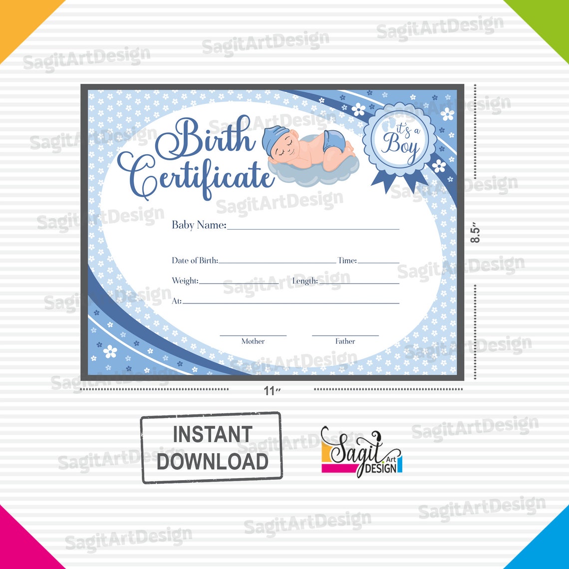 Baby Boy Birth Certificate Printable Newborn Certificate Etsy