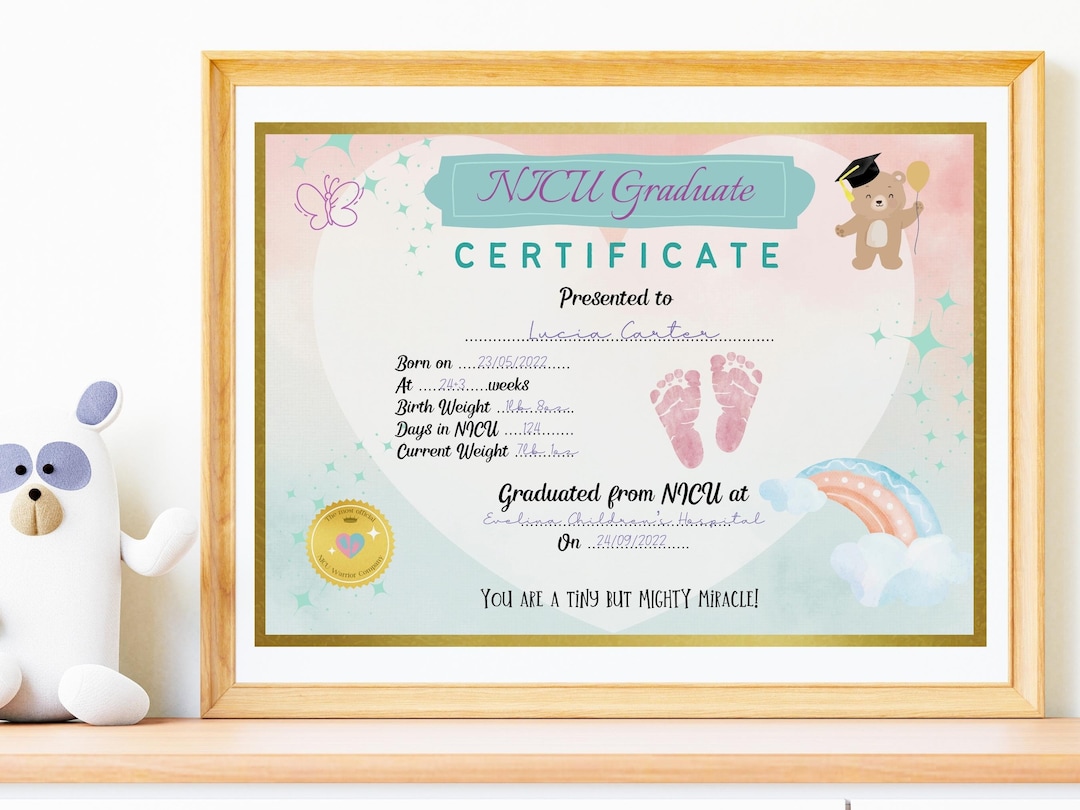 NICU Graduate Certificate Personalised Print NICU Graduation Preemie