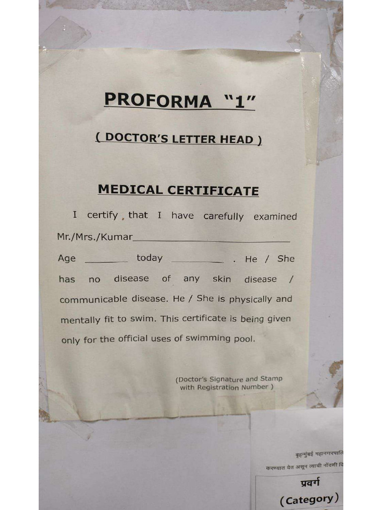 Fillable Online MEDICAL FITNESS CERTIFICATE FOR SWIMMING To whom