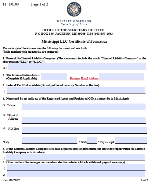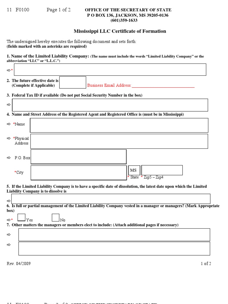 Certificate Of Formation Mississippi