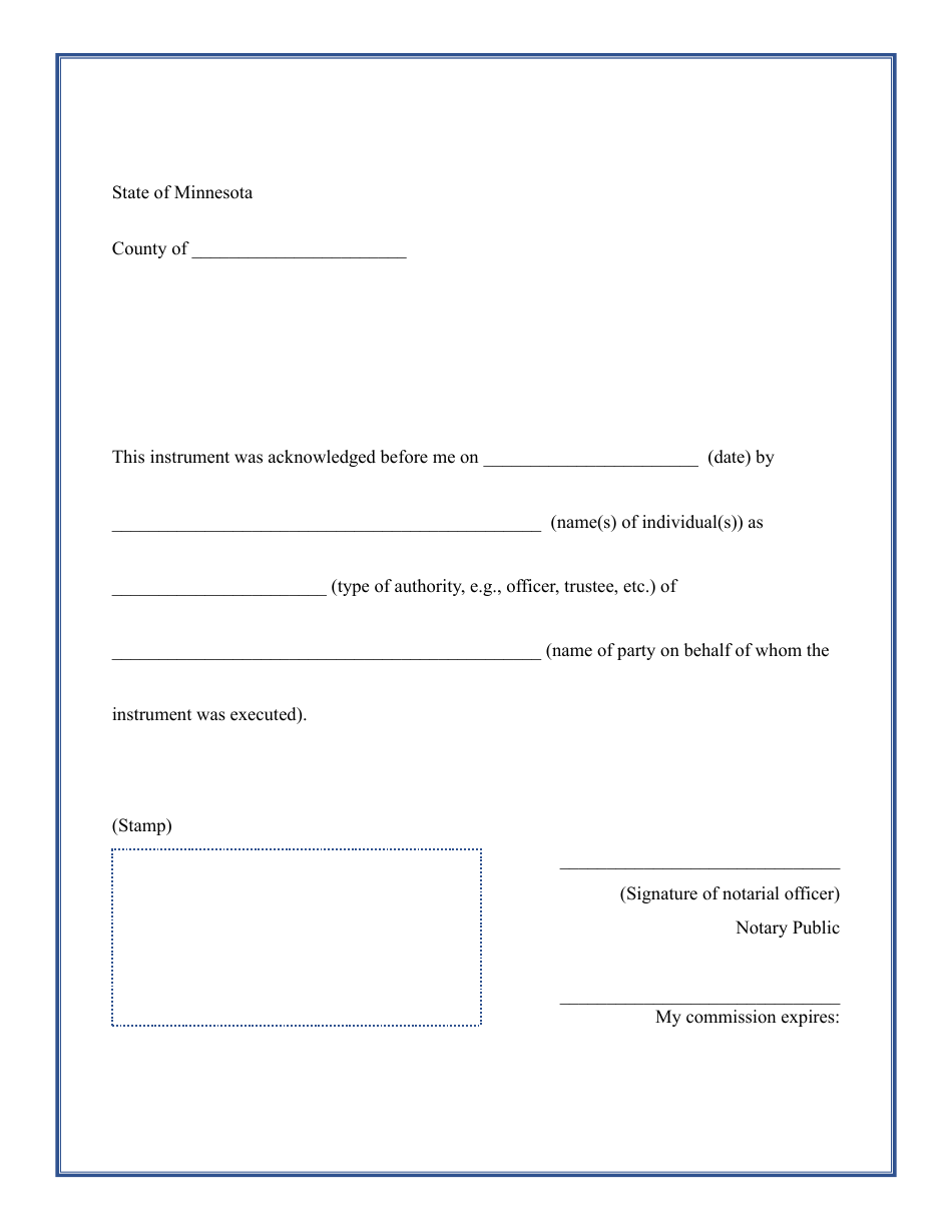 Minnesota Certificate of Notarial Act (Notarization) Acknowledgment