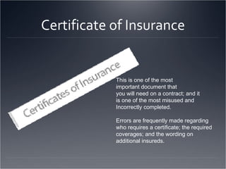 Certificates of Insurance Blanket Additional Insured YouTube