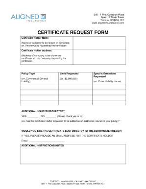 Certificate Of Insurance Request Form Template AT A GLANCE