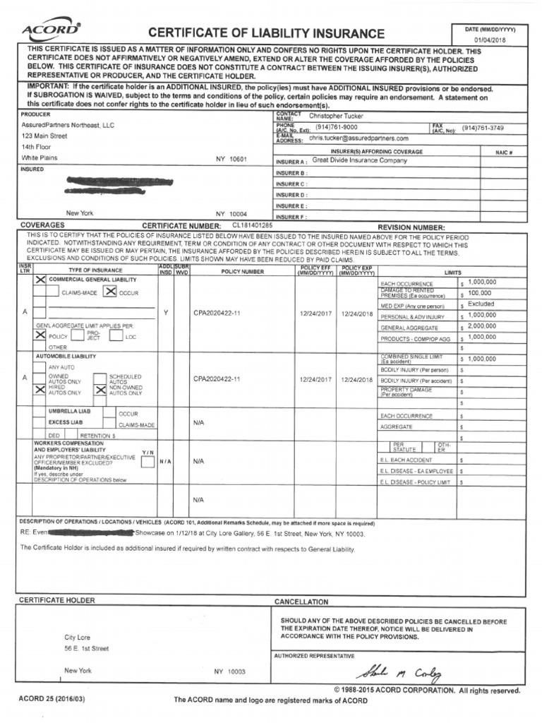 Sample Form 1 Certificate of Liability Insurance Enlarged