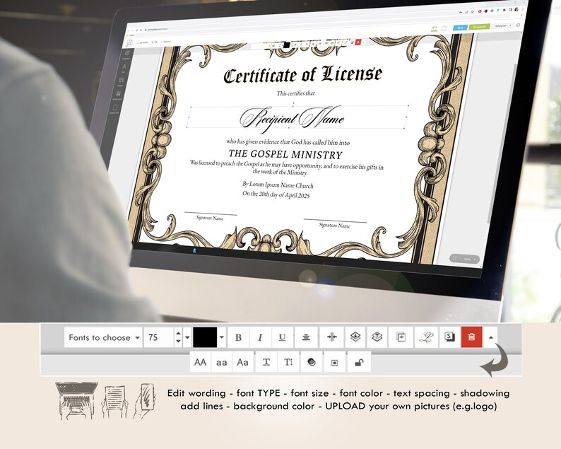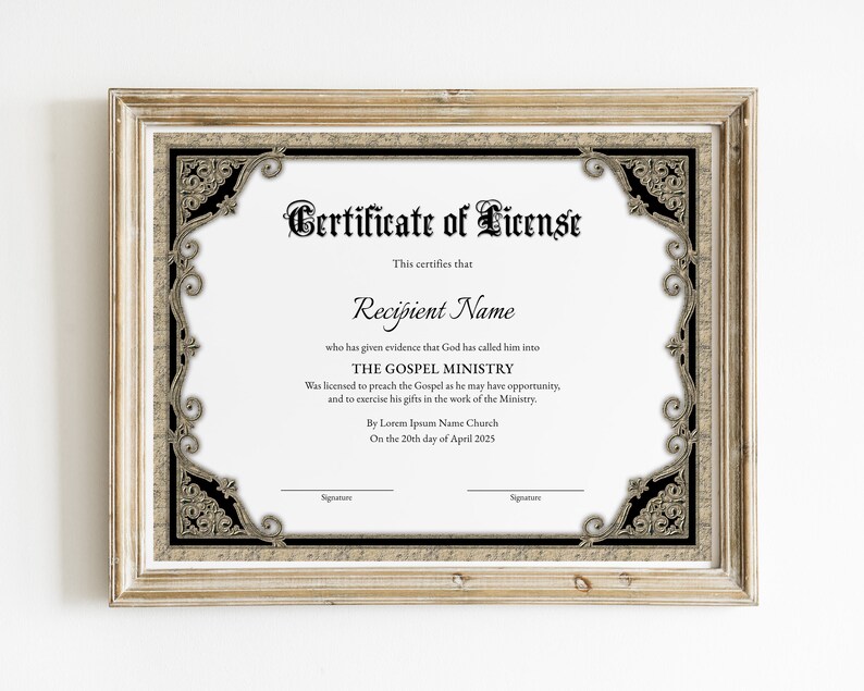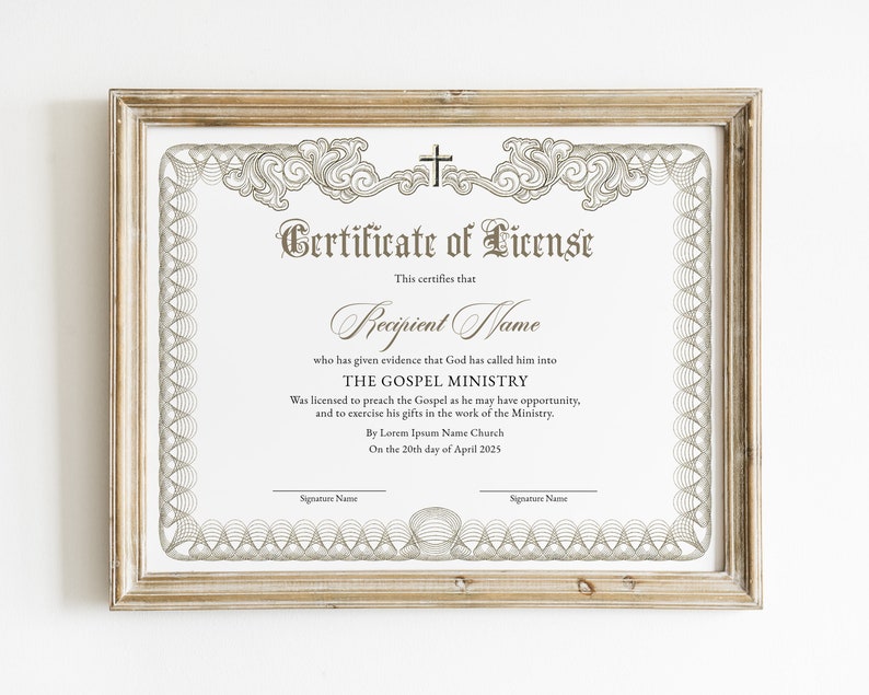 License to Preach Elegant Editable Ordination Certificate Etsy Gift