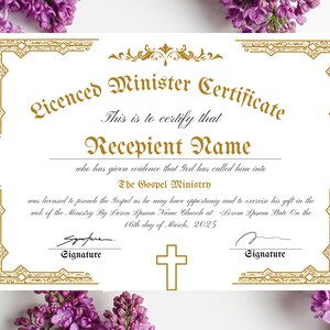 Editable Licensed Minister Certificate Template Printable Etsy