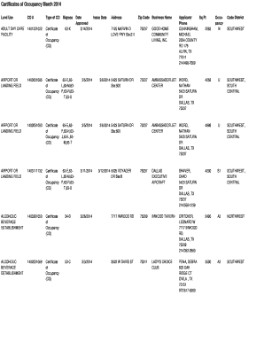 Fillable Online Certificates of Occupancy March 2014 Dallas Fax Email