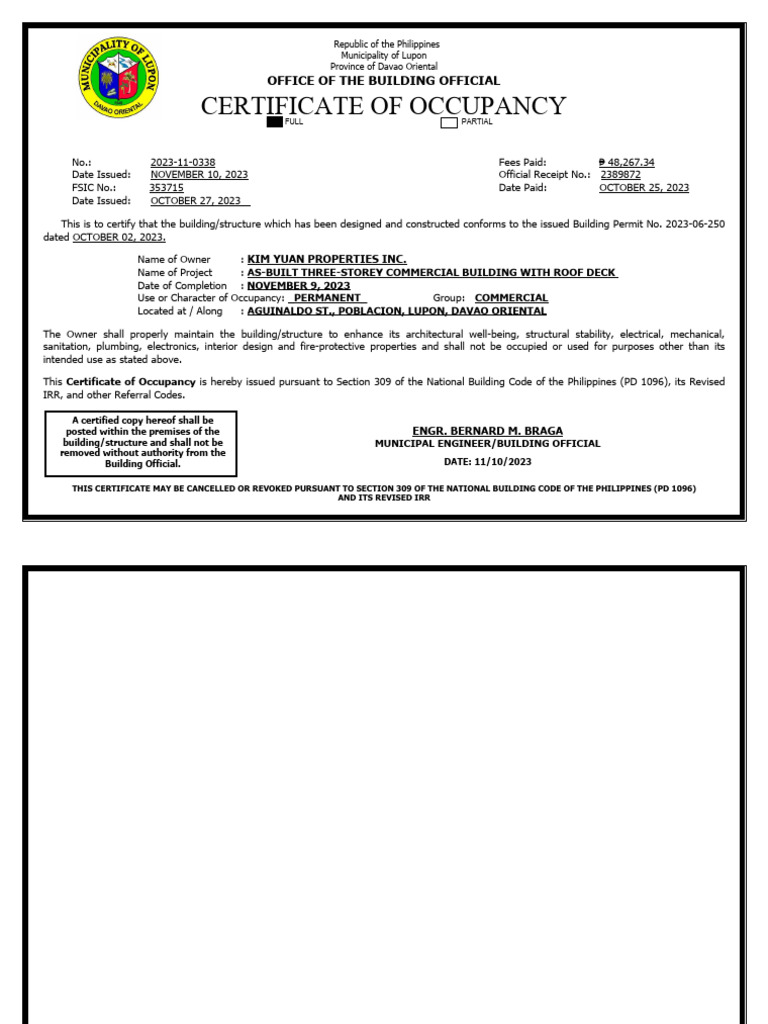 Certificate of Occupancy PDF