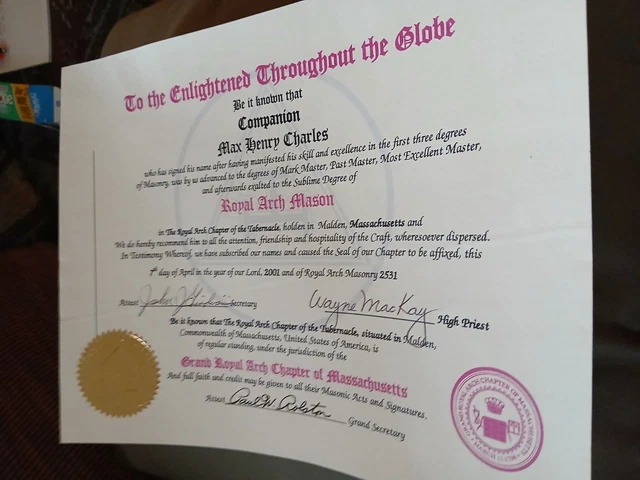 FREE MASONS CERTIFICATE Of Royal Arch Mason Malden MA £8 89 PicClick UK
