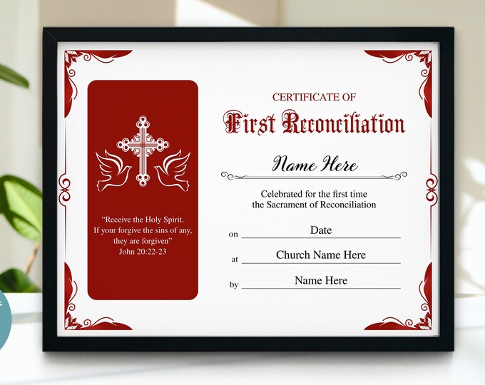 Traditional First Reconciliation Sacrament of Confession Certificate in
