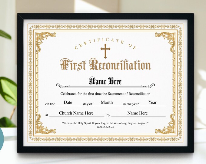 Editable Certificate of Reconciliation religious Gold Certificate