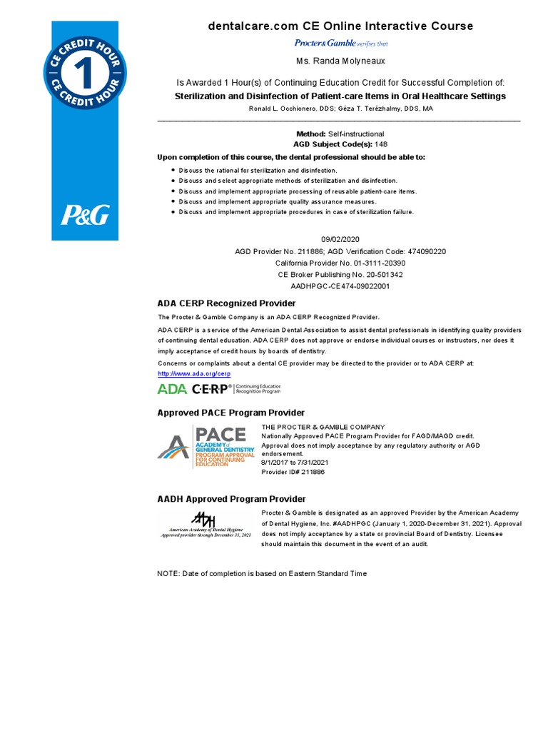 Sterilization Certificates O #39 Relyable (House Brand) Cartridges